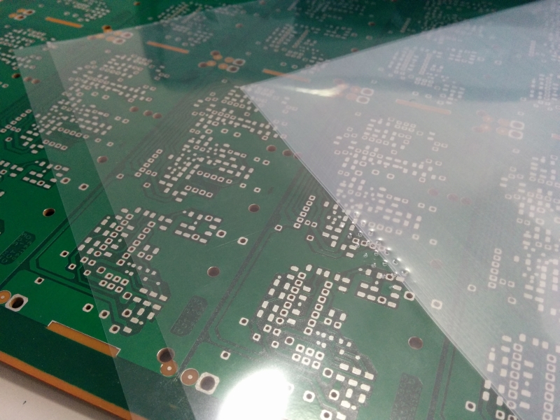 PET Release Film for pressing rigid or multilayer PCB, with silicon as release agent. This foil is low cost and can withstand temperaturs up to 210°C (410°F).
